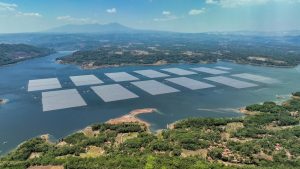 Tampilan Pembangkit Listrik Tenaga Surya (PLTS) Terapung Cirata berkapasitas 192 megawatt peak (MWp) yang dibangun di atas Waduk Cirata, Purwakarta, Jawa Barat diresmikan langsung oleh Presiden Joko Widodo pada November 2023. FOTO DOK PLN
