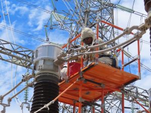 | Petugas PDKB PLN melakukan pemeliharaan secara online atau tanpa padam pada Gardu Induk Kramatwatu, Serang, Banten. FOTO DOK PLN |