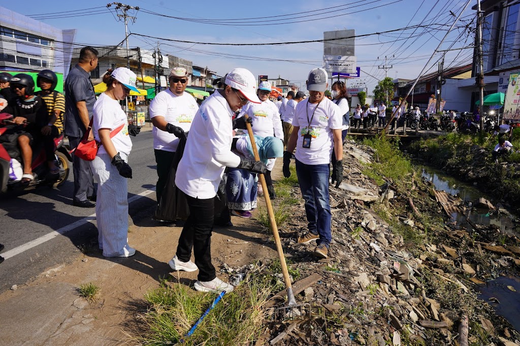 General Manager PLN UID Kalbar, Joice Lanny Wantania, turun langsung memimpin aksi Zero Waste Warriors dengan penuh semangat, memungut sampah plastik di sekitar kantor PLN UID Kalbar.(FOTO/DOK/PLN)
