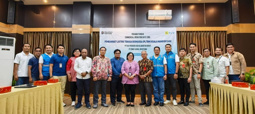 energikita.id – PT PLN (Persero) Unit Induk Distribusi (UID) Kalimantan Barat resmi menandatangani Commercial Operation Date (COD) Pembangkit Listrik Tenaga Biomassa (PLTBm) Kuala Mandor berkapasitas 1 x 5 MW milik PT Pundi Global Investama (PGI). Penandatanganan ini menandai beroperasinya pembangkit energi baru terbarukan tersebut dalam sistem kelistrikan Kalimantan Barat, sekaligus menjadi bagian penting dari langkah percepatan transisi energi nasional.
